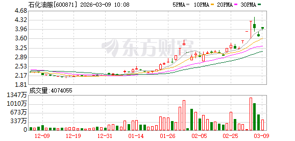 石化油服再度涨停,6个交易日内录得4个涨停,累计涨幅为25.86%,累计换手率为23.66%。截至9:25,该股今日成交量3032.67万股,成交金额1.23亿元,换手率0.22%。最新A股总市值达547.30亿元。